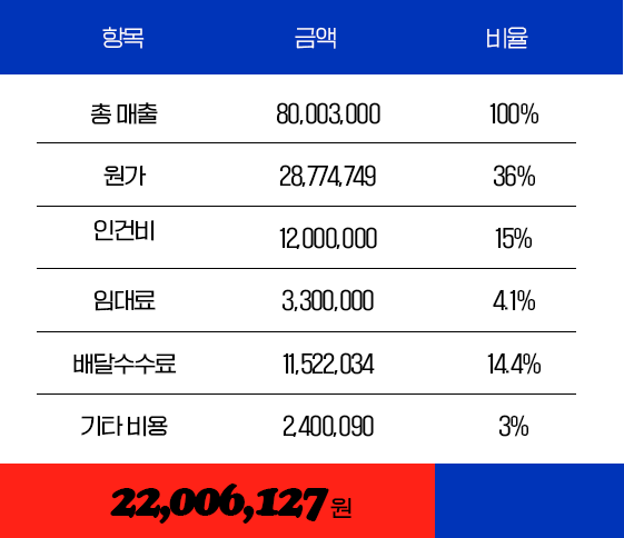 오픈 8개월만에 실평수7평 기준 월매출 8,000돌파